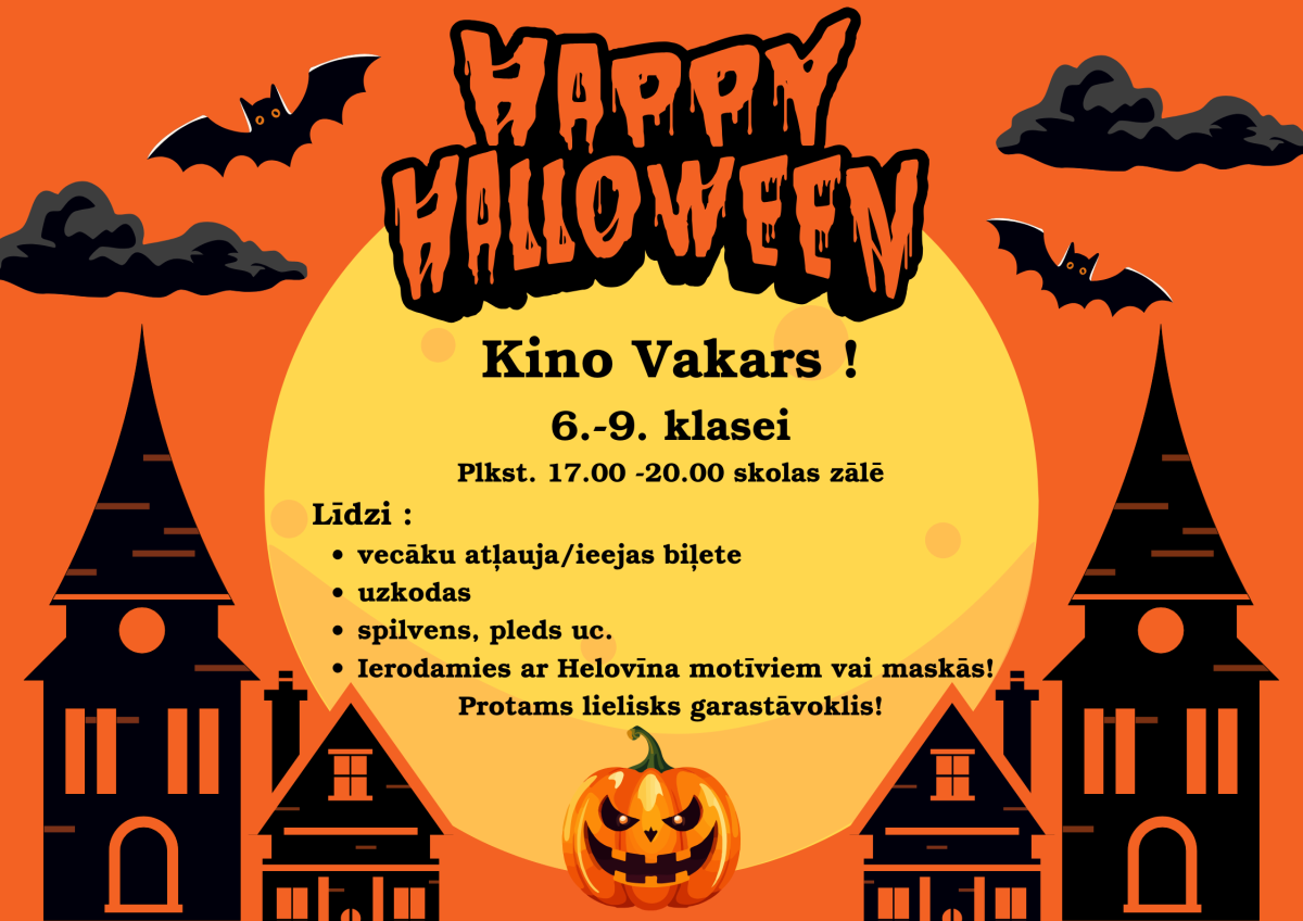 Helovīna noskaņās 31. oktobrī skolā notiks kino vakars, kurā skolēniem būs iespēja skatīsies šausmu filmu – “Insidious : The Last Key”. Aicinām bērnus piedalīties aizraujošā, draudzīgā pasākumā ar Helovīna tematiku!