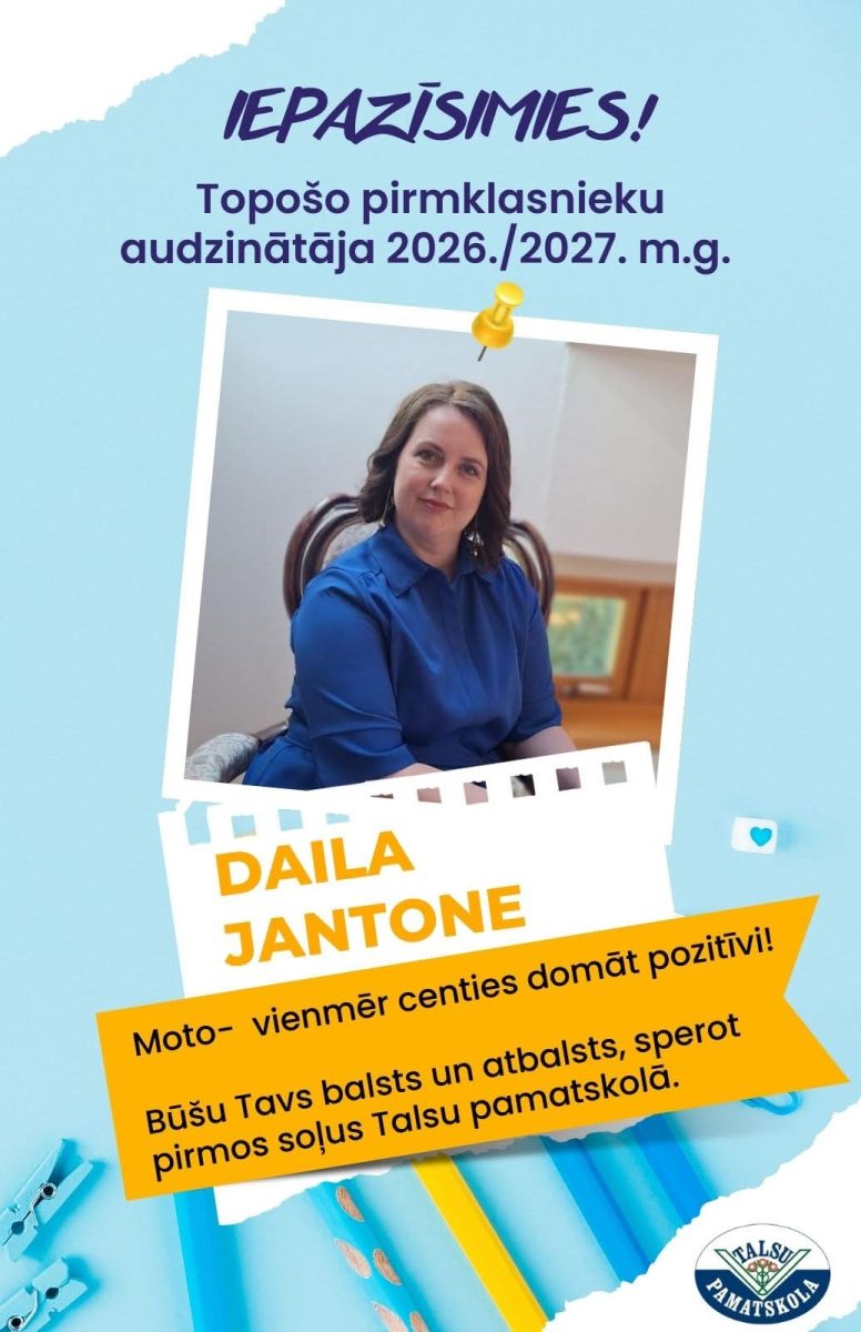 2026./2027. m.g. pirmklasniekus Talsu pamatskolā sagaidīs audzinātāja Daila Jantone.