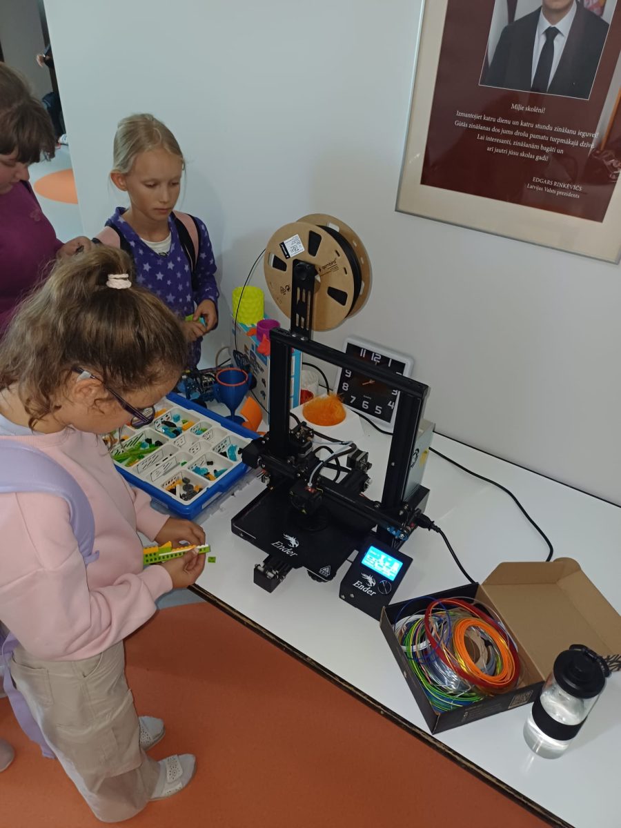 Skolotāja Monta Jēkabsone organizēja skolēniem meistarklasi 3D printēšanā. Skolēni bija ļoti ieinteresēti, jo gan bibliotēku, gan franču valodas kabinetu rotā oriģināli 3D darbi. Top arī vēl jaunas idejas.