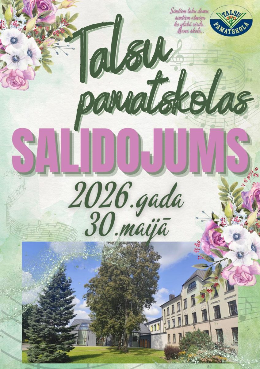Aicinām absolventus, skolotājus, darbiniekus uz Talsu pamatskolas salidojumu 2026.gada, 30.maijā!