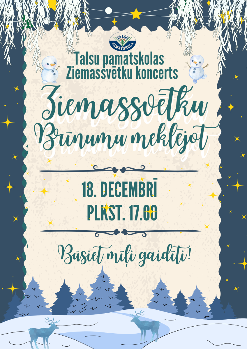 18.12., plkst. 17.00, Ziemassvētku koncerts – “Ziemassvētku brīnumu meklējot”. Lūgums, visiem koncerta dalībniekiem ierasties svinīgos tērpos, lūgums, pievērst uzmanību arī svētku apaviem.